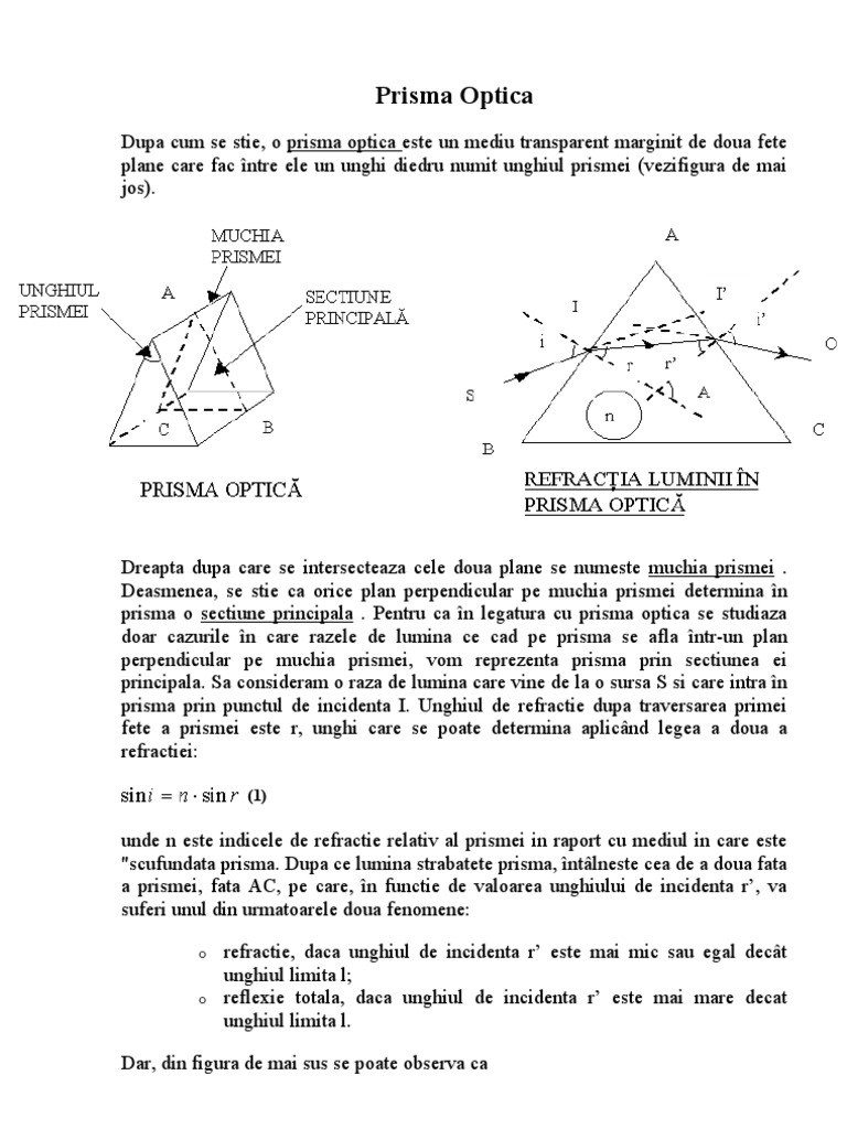 Care Este Masura Indicelui De Refractie Al Unei Prisme Avand