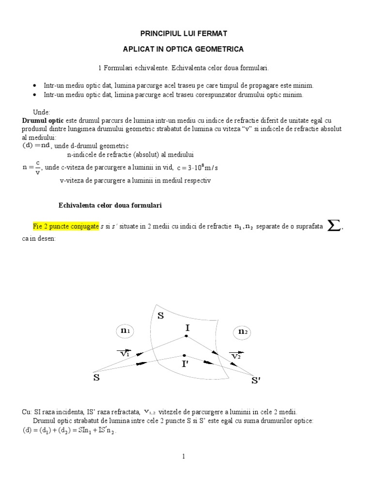 Principiul Lui Fermat Aplicat In Optica Geometrica 1669